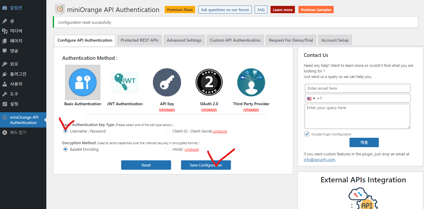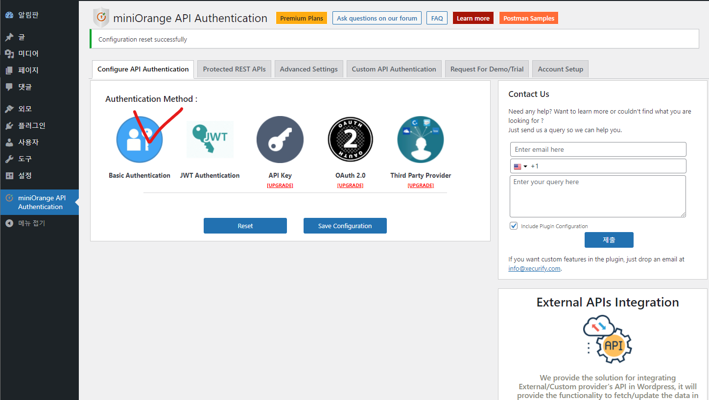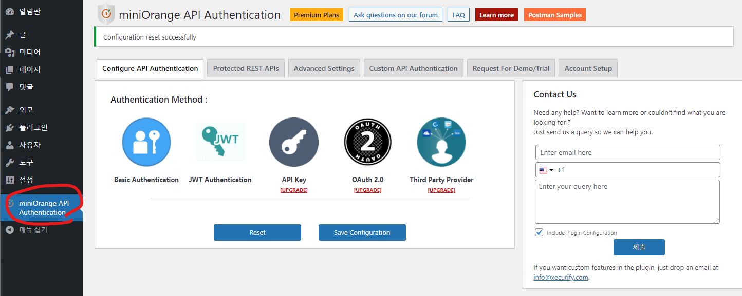 miniOrange wordpress plugin 유료버전의 금액은 $149에서 $449로 다양하지만 워드프레스를 일반적으로 사용하시는 경우는 기본인증 만으로도 충분히 REST API 기능을 활용 하실수 있을것 같습니다.